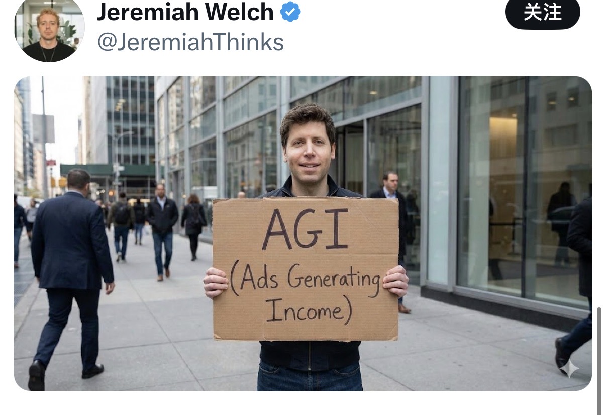 也有网友嘲讽OpenAI的 AGI 是Ads Generating Income(广告创收)。