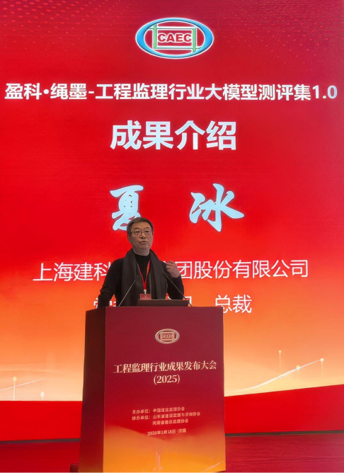 会上,上海建科咨询集团党委副书记、总裁夏冰作了“盈科·绳墨”工程监理行业大模型测评集Norma-MESBench 1.0首次发布的主题报告,分享该测评集的研发理念与行业价值。
