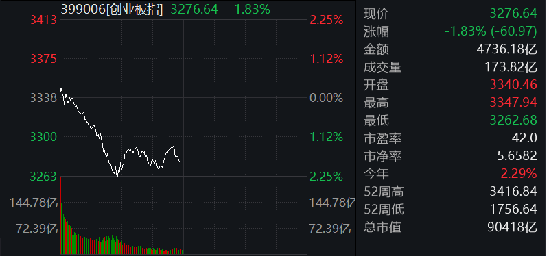 11:31 A股午盘丨创业板指半日跌1.83%