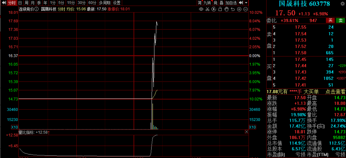 13:24 热门股国晟科技午后打开跌停,此前连续5日跌停。