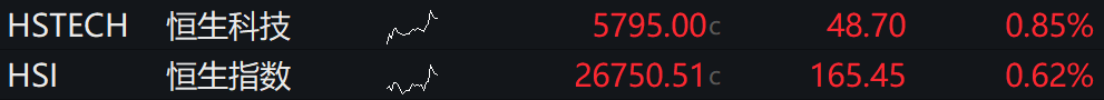 恒生指数高开0.62%,恒生科技指数涨0.85%。百度集团、金蝶国际涨逾3%,华虹半导体、蔚来涨逾2%。