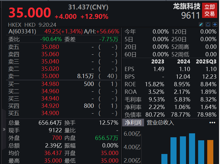 龙旗科技港股上市高开12.90%。公司全球发售5225.91万股H股,香港公开发售占10%,国际发售占90%。每股发售价31.00港元,全球发售净筹约15.2亿港元。公司正式构建“A+H”双资本平台。2024年,公司已于A股上市。