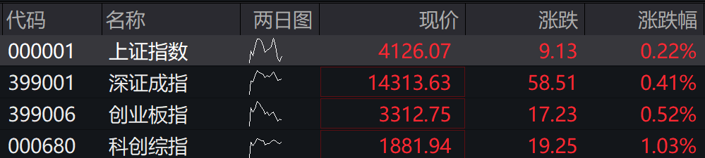 沪指涨0.22%,深成指涨0.41%,创业板指涨0.52%。科创综指涨1.03%。