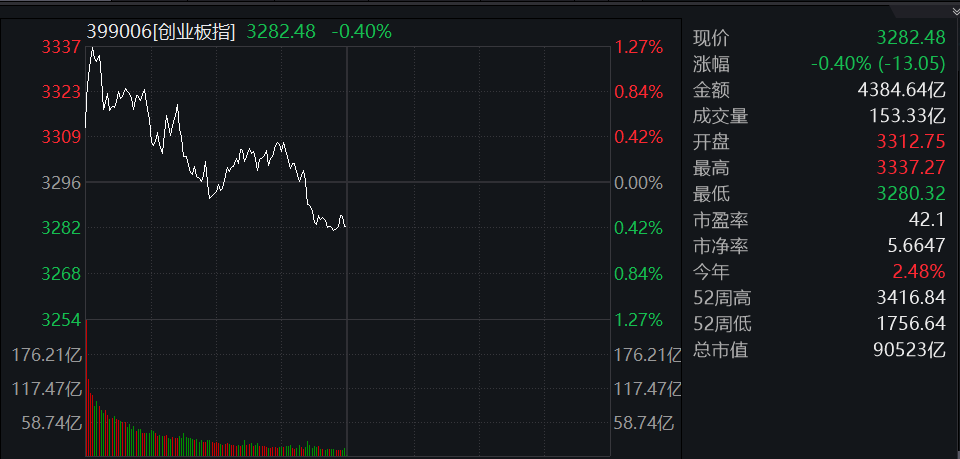 10:29 A股三大指数全部翻绿,创业板指早盘一度涨近1.3%。有色金属、半导体芯片、电网等方向跌幅居前,市场下跌个股近1900只。