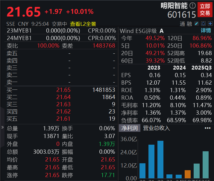 个股方面,明阳智能复牌涨停,公司筹划购买德华芯片100%股权。