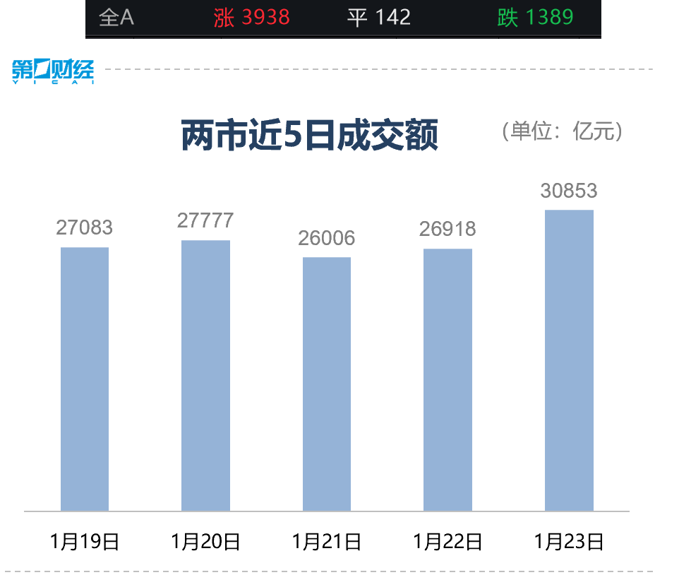 沪深两市成交额3.09万亿,较上一个交易日放量3935亿,全市场超3900只个股飘红。