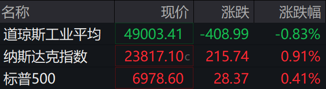 科技板块继续领涨。英伟达涨1.10%,微软涨2.19%,苹果涨1.12%,亚马逊涨2.63%,Meta涨0.09%,博通涨2.44%,谷歌涨0.42%,超威半导体涨0.29%。特斯拉跌0.99%。
