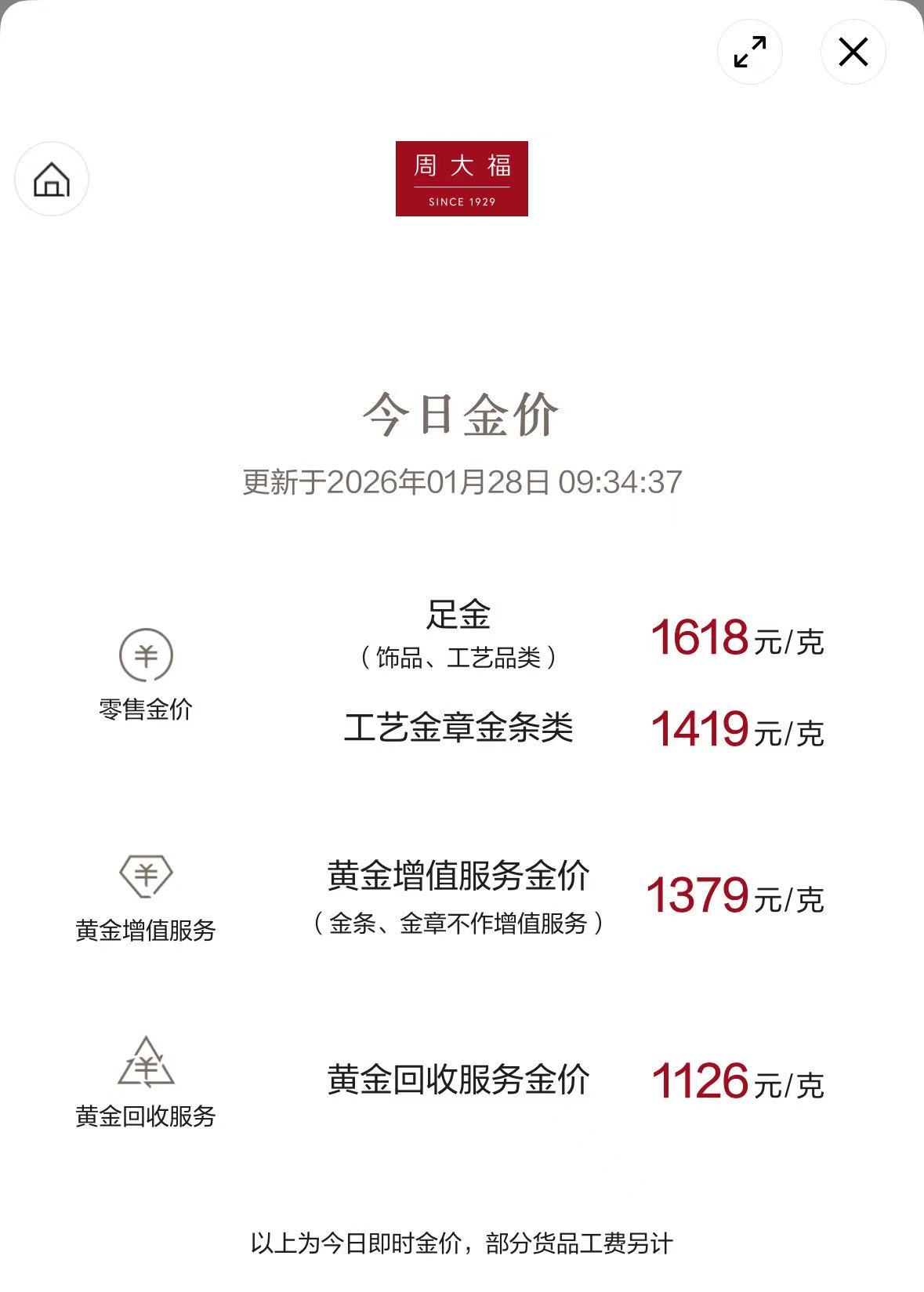 多家品牌金饰克价继续上涨,周生生克价1411元