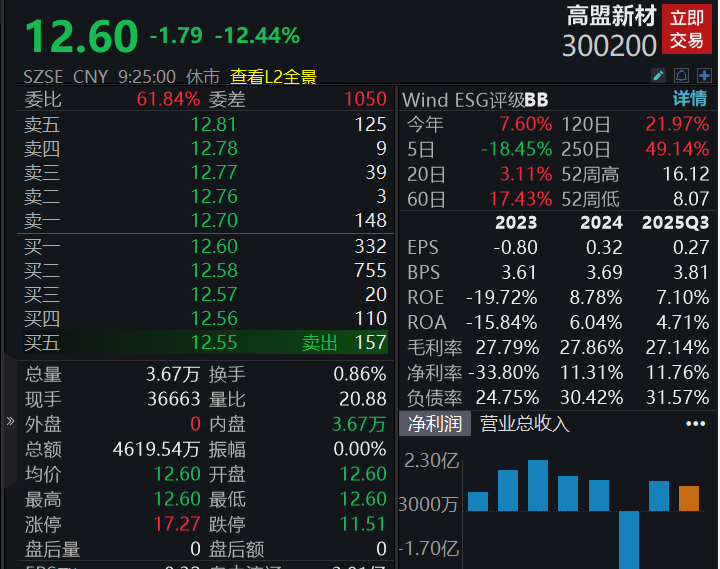 高盟新材低开12.44%、毅昌科技低开6.17%、东材科技低开5.88%。三家公司同步公告,实际控制人熊海涛被立案调查并实施留置。