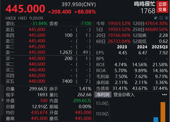 恒生指数高开0.73%,恒生科技指数涨0.56%。零食巨头鸣鸣很忙首日上市涨逾88%;紫金矿业涨逾2%,新东方跌逾3%。