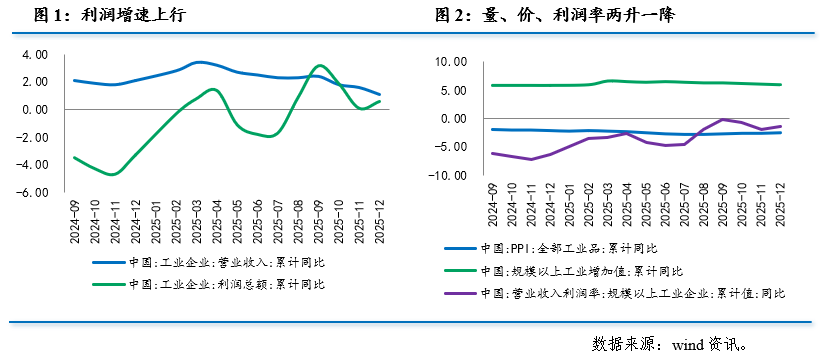 展望2026年,工业企业利润有望延续修复态势。需求端,国内消费平稳增长,投资逐步止跌回稳,出口有望量稳质升,总体需求稳中向好;物价端,“反内卷”政策作用下,物价降幅收窄,企业成本压力有所缓解,进一步支撑利润改善。此外,随着新型工业化和现代化产业体系建设加快推进,制造业有效投资、设备更新和技术改造需求持续释放,工业企业经营环境和利润率有望逐步改善,带动工业企业利润由阶段性修复向更具韧性的温和增长过渡。