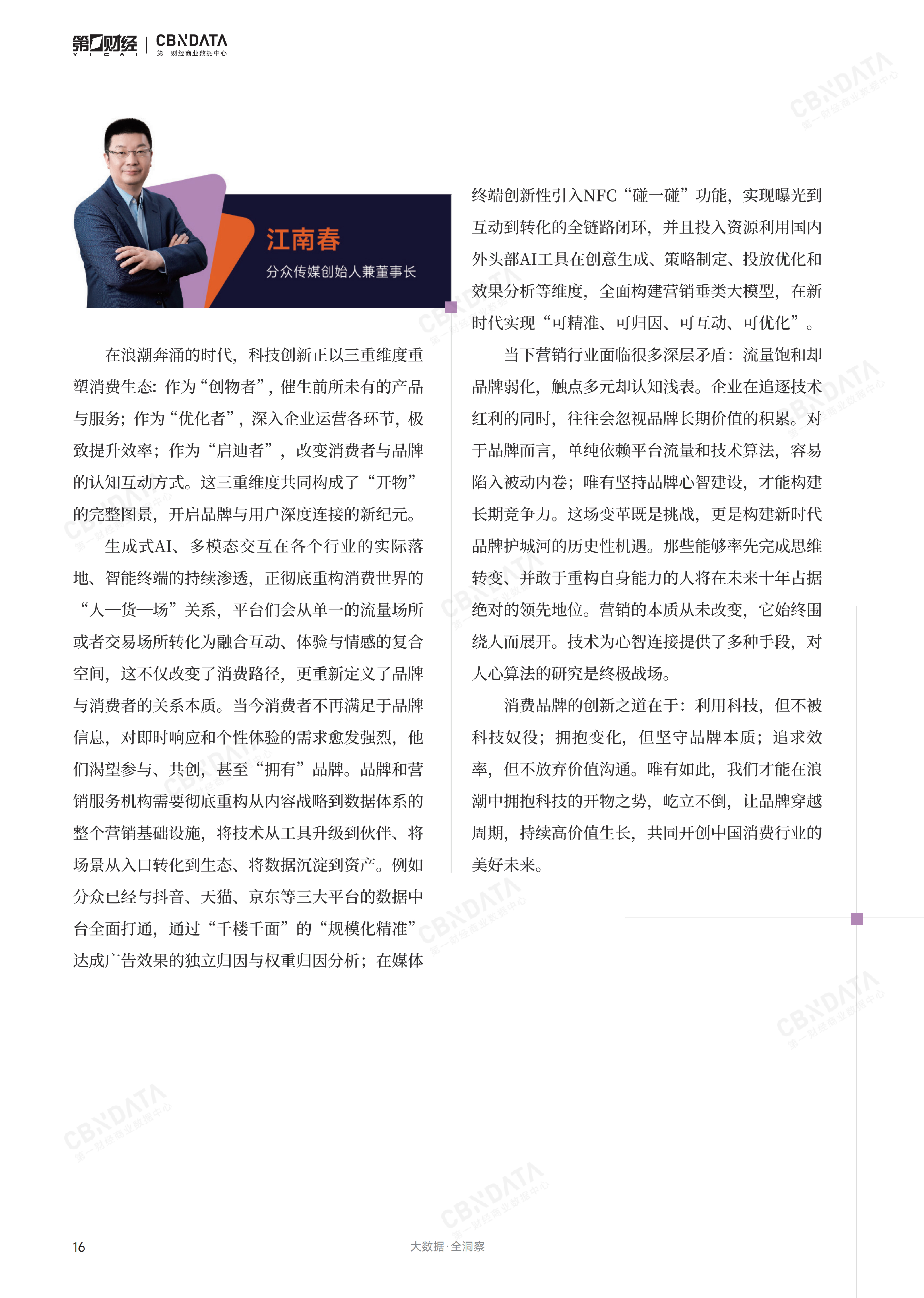 我们从科技演进、产业重构、品牌能力、人群行为、品类创新等多个关键维度出发,依托数百张原创数据图表与可视化分析模型,系统呈现政策环境、智能创新趋势、资本动向、企业实践与消费决策变迁之间的深层联动关系。