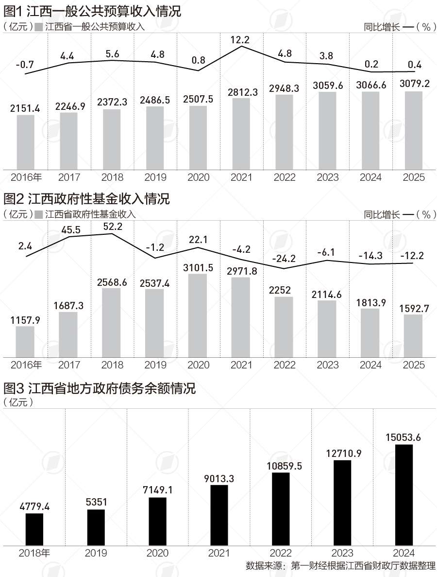近日,江西省十四届人大四次会议召开,其中一项议程是审查《关于江西省2025年全省和省级预算执行情况与2026年全省和省级预算草案的报告》(下称“江西预算报告”)。江西省财政厅披露了江西预算报告部分内容,当地政府财政收支状况明晰。