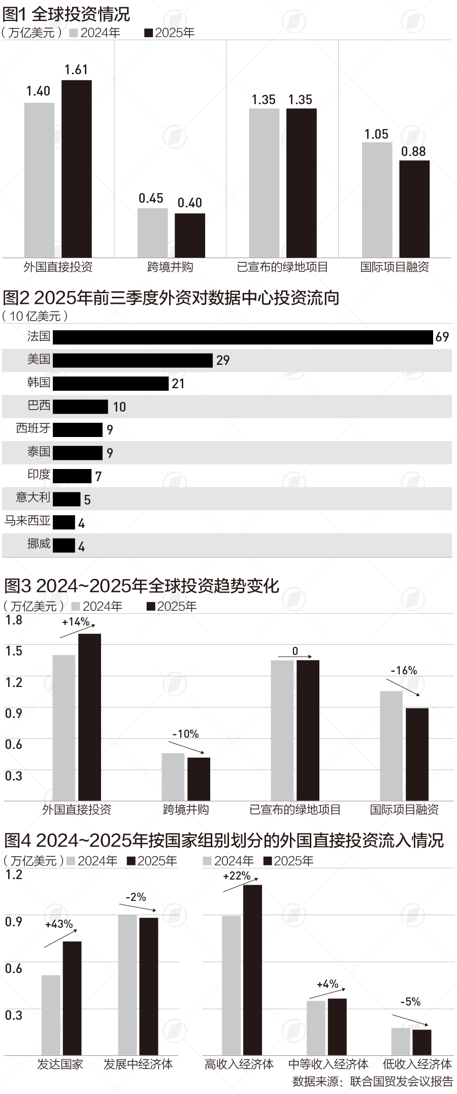联合国贸发会议(UNCTAD)最新发布的《全球投资趋势监测报告》(下称“报告”)显示,2025年全球外国直接投资(FDI)增长14%,达到1.6万亿美元,结束连续两年低迷状态。