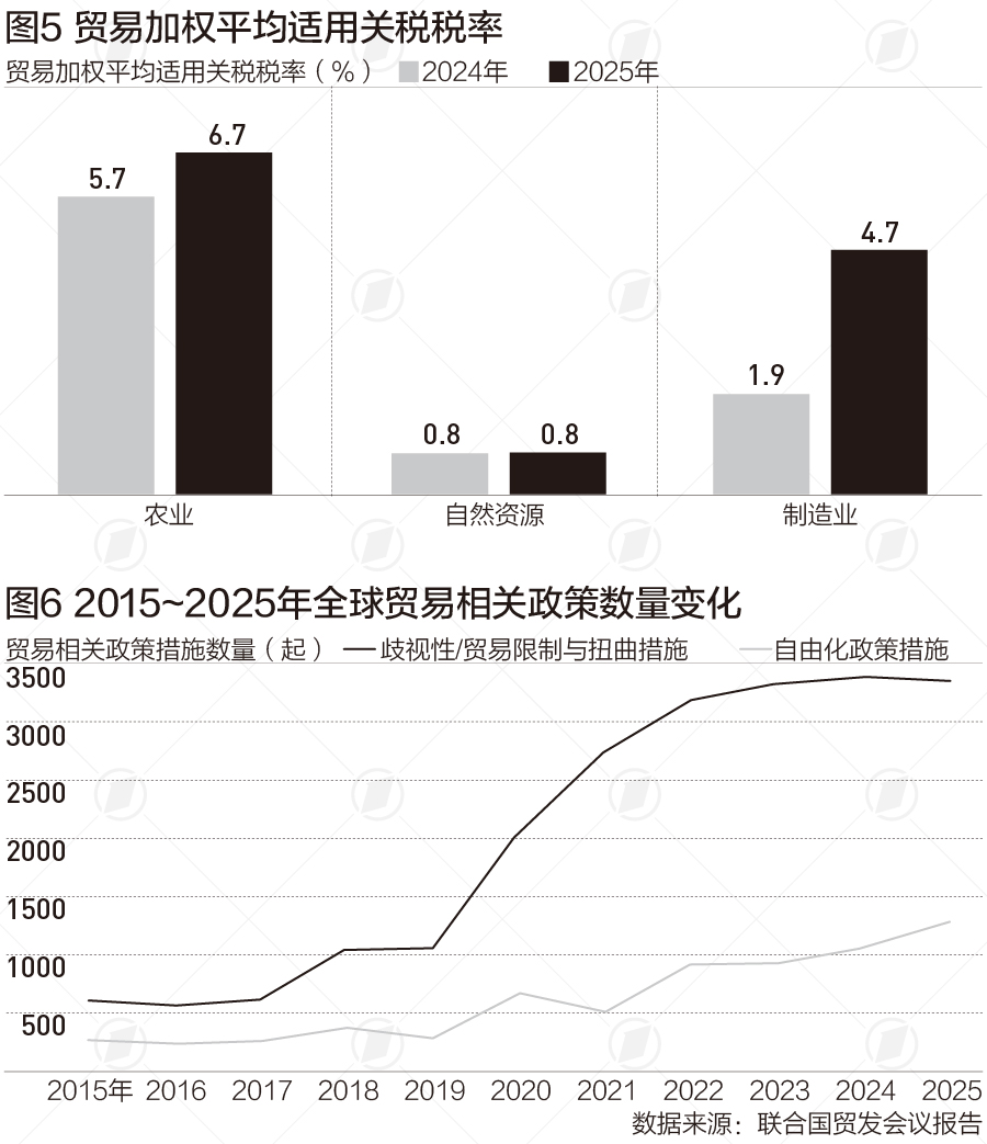 报告还指出,在监管方面,自2020年以来全球新增约1.8万项歧视性贸易措施,2025年新增歧视性贸易措施3351项,而同期推出的自由贸易措施仅为1280项。技术性法规已影响全球约三分之二的贸易,推高合规成本,中小出口商首当其冲。