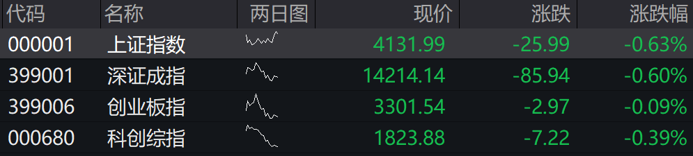 上证指数低开0.63%,深证成指低开0.6%,创业板指低开0.09%。科创综指低开0.39%。