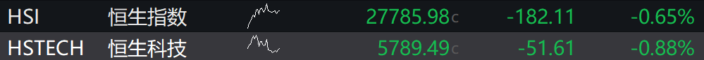 恒生指数低开0.65%,恒生科技指数跌0.88%。紫金矿业、中国宏桥跌逾3%。科网股多数走低,快手、阿里巴巴跌幅靠前。
