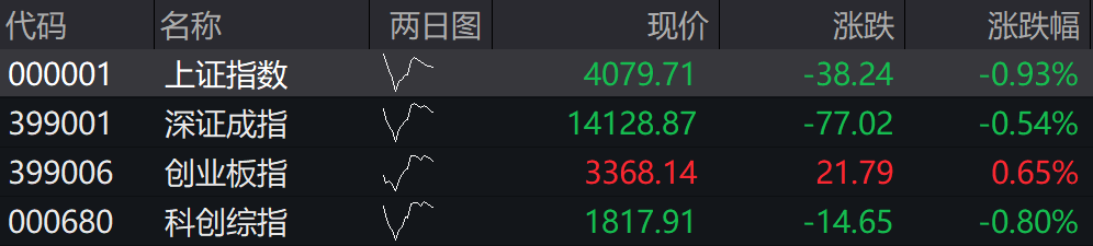 上证指数跌0.93%,深成指跌0.54%,创业板指涨0.65%。科创综指跌0.8%。