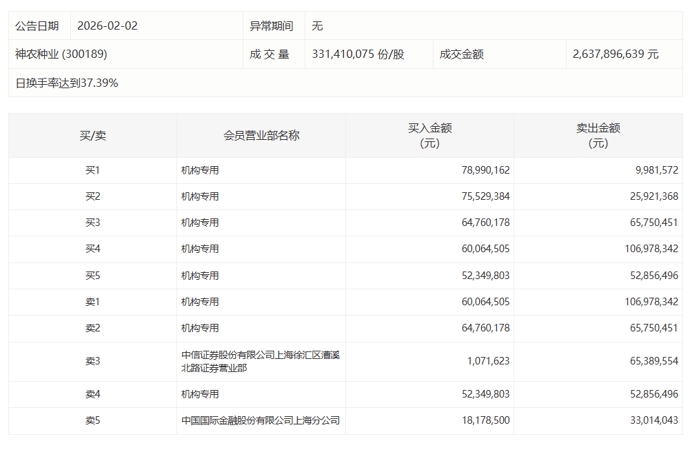 神农种业今日跌8.78%,2家机构专用席位净买入1.19亿元