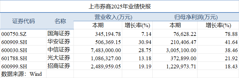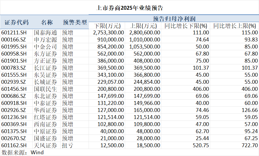 目前披露2025年业绩快报的5家券商,去年全部实现增收增利,同时,交出业绩预告的17家券商,业绩也悉数预喜,其中16家预增、1家扭亏。