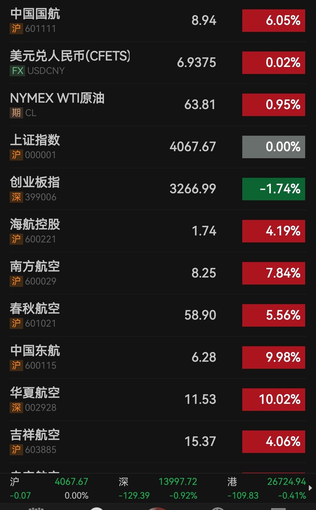 2月4日,A股航空板块集体大涨。截至中午收盘,华夏航空和中国东航涨停,南方航空和中国国航涨幅也超过6%。