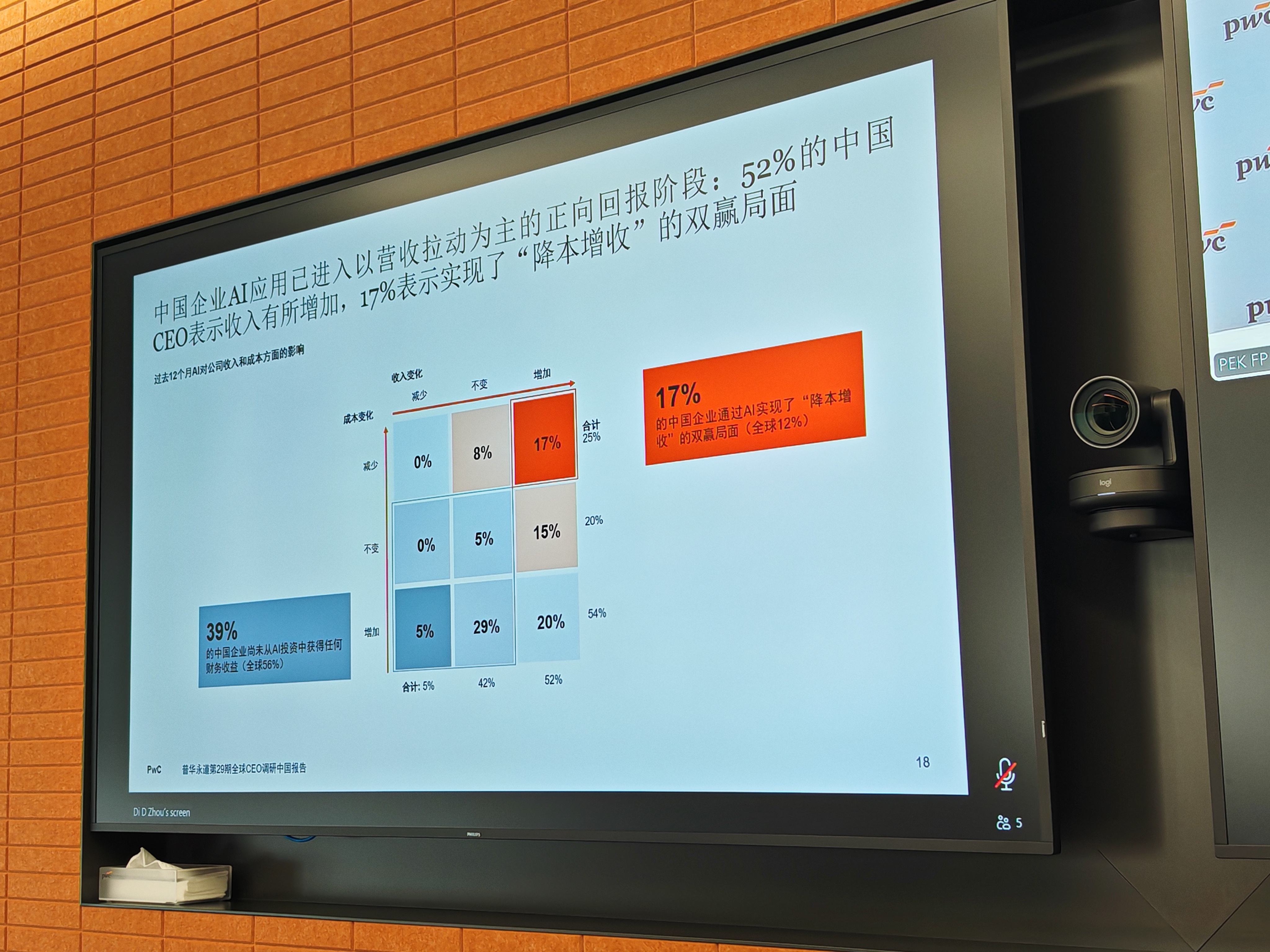 当前,中国企业AI应用已进入以营收拉动为主的正向回报阶段,转型成效领跑全球。根据报告,52%的中国CEO表示AI应用带来的收入有所增加,远高于全球的29%;17%称通过AI实现了“降本增收”的双赢局面,高于全球5个百分点。