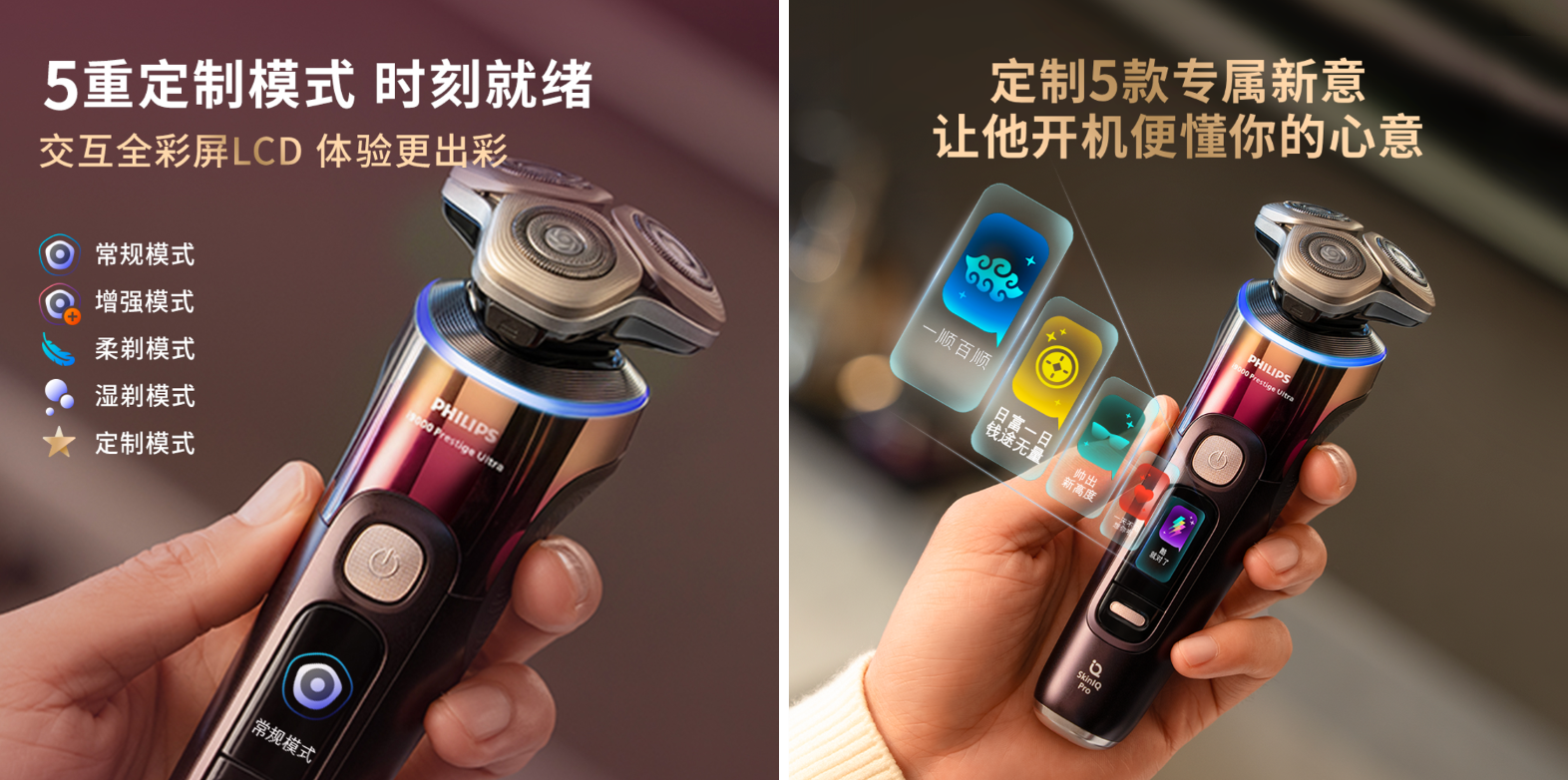 除了以专业科技解决用户痛点,此次新意限定版剃须刀还从个性化维度满足男士的多元需求。不论是晨间匆忙,还是皮肤敏感,常规、增强、湿剃、柔剃、定制等5重智能剃须模式都足以灵活应对。更值得一提的是,该款剃须刀不仅自带惊喜开机交互动画,可以随心定制5大主题问候,而且还搭载了AI护肤系统,在家就能实现肤质检测。每日剃须,已然从例行公事升华为专属的互动仪式,成为这个新春最具仪式感的情感表达。