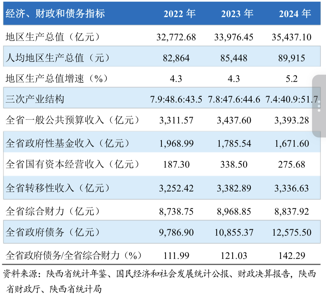 上图为陕西近年主要经济财政数据,来自2026陕西省政府一般债券(二期)信用评级