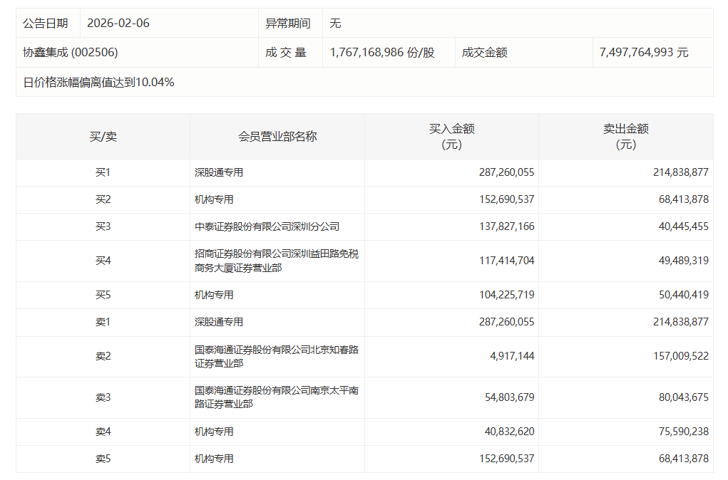 协鑫集成今日涨停,2家机构专用席位净买入1.38亿元