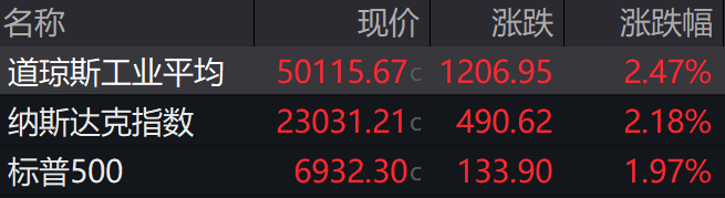 权重股走势分化。英伟达上涨7.87%,此前该股已连续第五个交易日累计下跌10.72%;特斯拉上涨3.50%,苹果上涨0.80%,微软上涨1.90%。相较之下,亚马逊股价下跌5.6%,限制了三大股指的整体涨幅;谷歌A股下跌2.53%,谷歌C股下跌2.48%,Meta下跌1.31%。