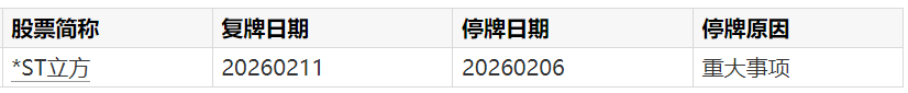A股复牌提示:2股今日复牌
