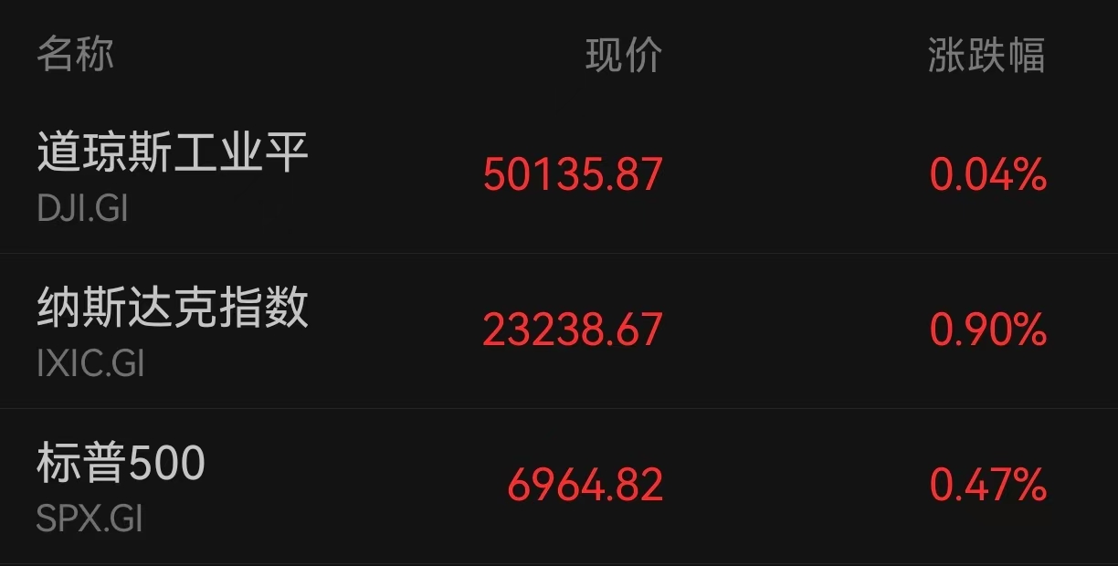 ►►美东时间2月9日,美股三大指数低开高走,道指再创历史新高,标普500指数逼近历史高点。截至收盘,道指涨0.04%,标普500指数涨0.47%,纳指涨0.90%。