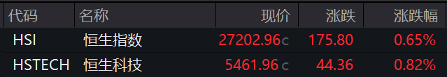 恒生指数涨0.65%,恒生科技指数涨0.82%。泡泡玛特、网易均涨超2%,阿里巴巴、中芯国际均涨超1%。新股乐欣户外大涨逾96%。