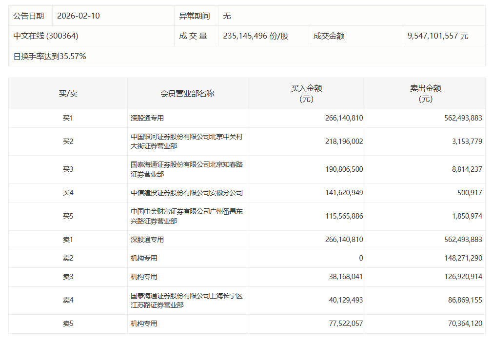 中文在线今日20cm涨停,有2家机构专用席位净卖出2.37亿元