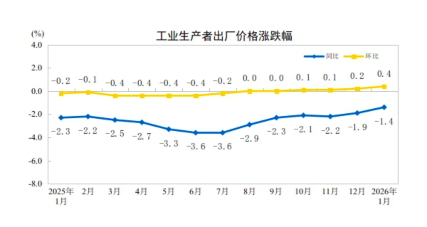 受春节错月等因素影响,1月居民消费价格指数(CPI)同比涨幅回落。受“反内卷”政策继续落实、部分行业需求增加等因素拉动,工业生产者出厂价格指数(PPI)继续改善。