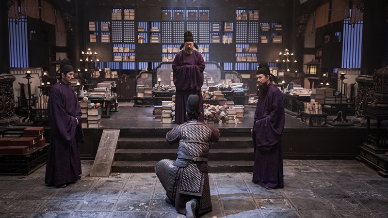 这种写实主义渗透在每个细节里。官方文书皆为手写骈文,火场戏全部实景搭建,服装道具依据史料反复推敲。“我希望它传递出来的东西不是合成的。演员在真实的场景里,能感受到温度,会紧张,他的表演才是实实在在‘砸’在地上的,是有重量的,不是轻飘的。”杨磊说。