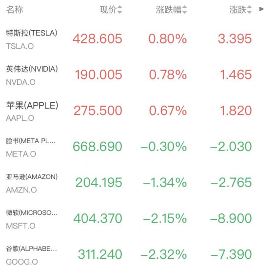 明星科技股涨跌互现,特斯拉涨0.80%,英伟达涨0.78%,苹果涨0.65%,消息称公司对Siri虚拟助手的升级在测试阶段遭遇阻碍,可能导致多个备受期待的功能发布推迟。Meta跌0.30%,亚马逊跌1.34%,微软和谷歌跌超2%。