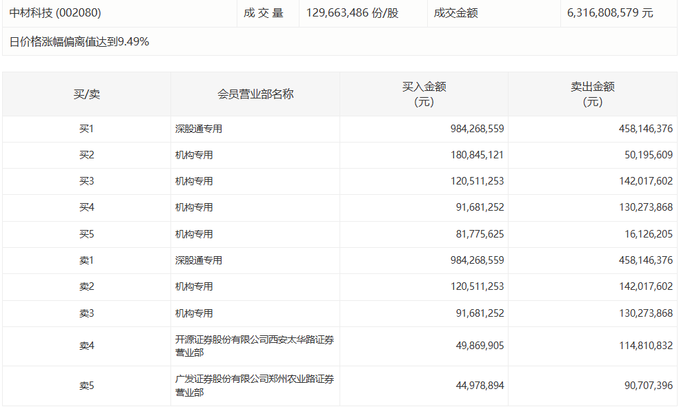 中材科技今日涨停,2家机构专用席位净买入1.96亿元