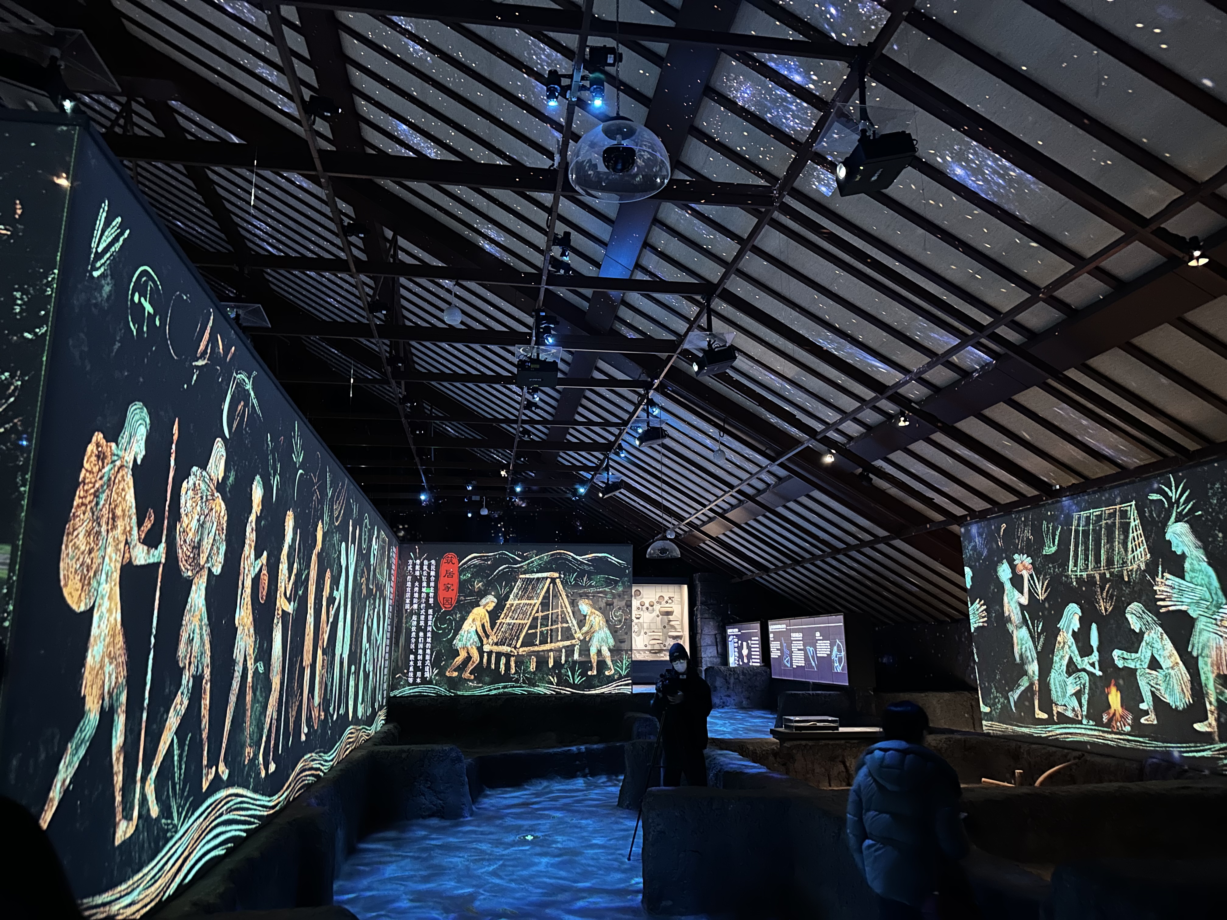 在广富林文化展示馆,第一财经记者看到原本传统的静态考古展示已经加入了科技元素,通过动态影像、灯光与声效叠加,将5000年前广富林先民的生活图景再现,让考古现场“复活”。在原本只有静态雕塑和房屋展示的展厅,如今加上了声、光、电效果,并且通过“时空穿越”模式让游客直观了解广富林文化。展馆创新采用分层叙事系统,实时交互技术会随着游客的动线变化,系统会自动生成“一步一千年”的情境画面。