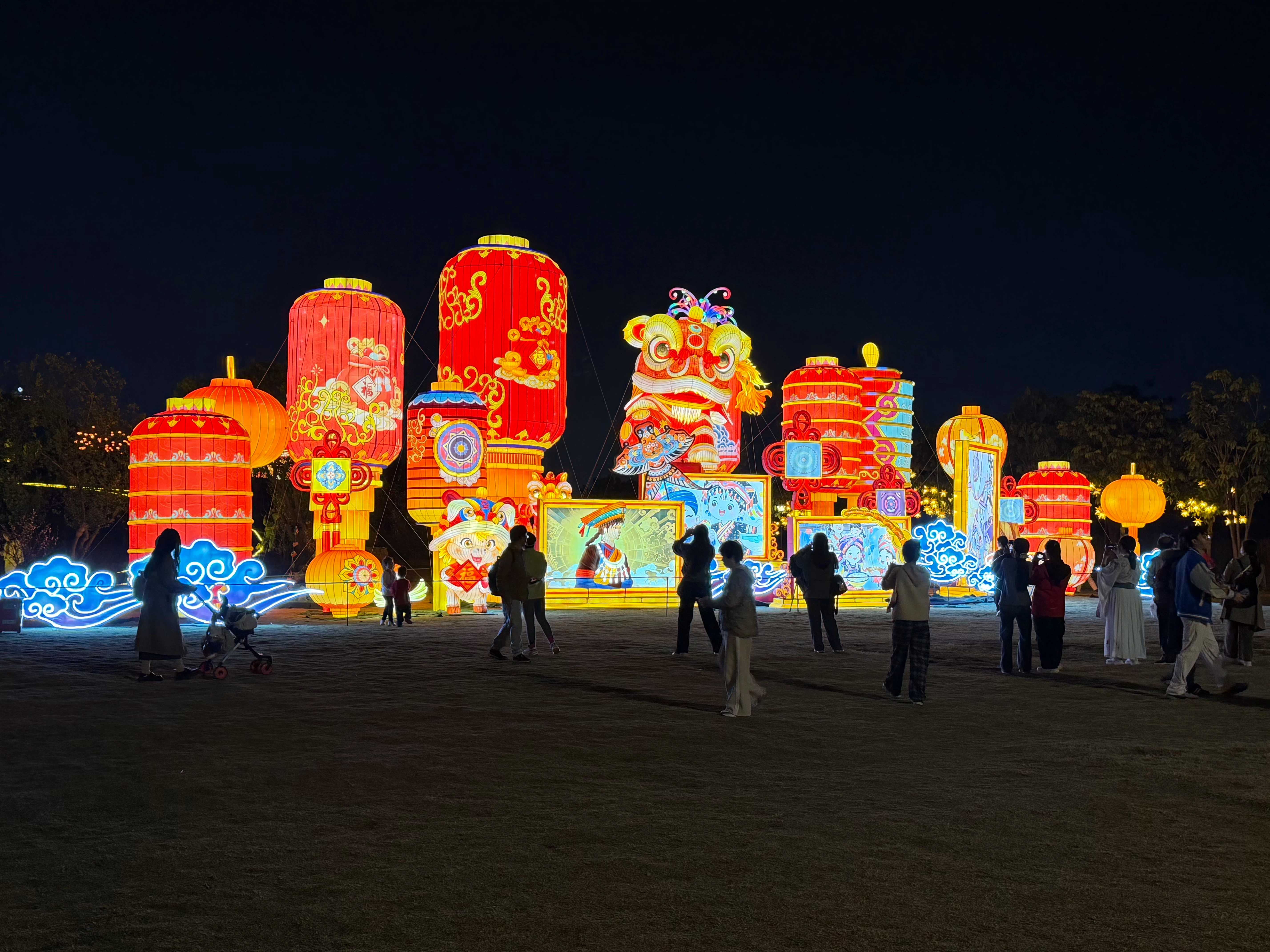 有本地市民向记者表示,风景区内的灯饰造型有不同定位,大人喜欢看财运意头的灯饰,小孩喜欢看童话风格的灯饰,水上的灯饰更有看点。天黑之前可以赏花,入夜之后就能赏灯,部分时间段还能看到无人机表演和水上火壶表演,具有较大的可玩性。“我们提前做了攻略,下午入场只要20元的票价,比等到夜间再入场便宜很多。园区里各种餐饮店铺不少,自带食物也是可以的。”