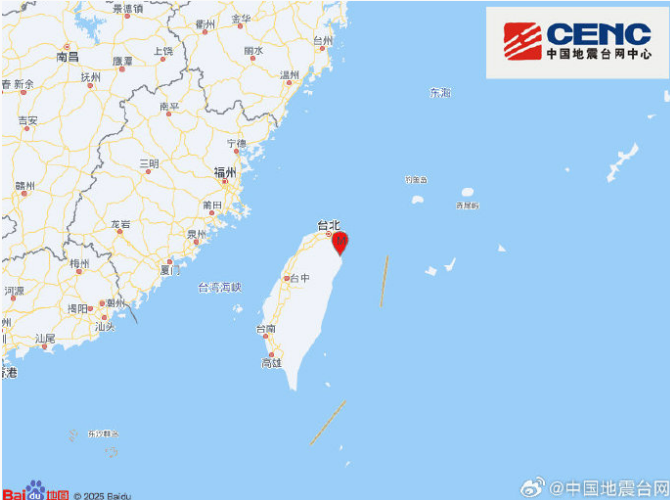 台湾宜兰县发生4.7级地震 震源深度8千米