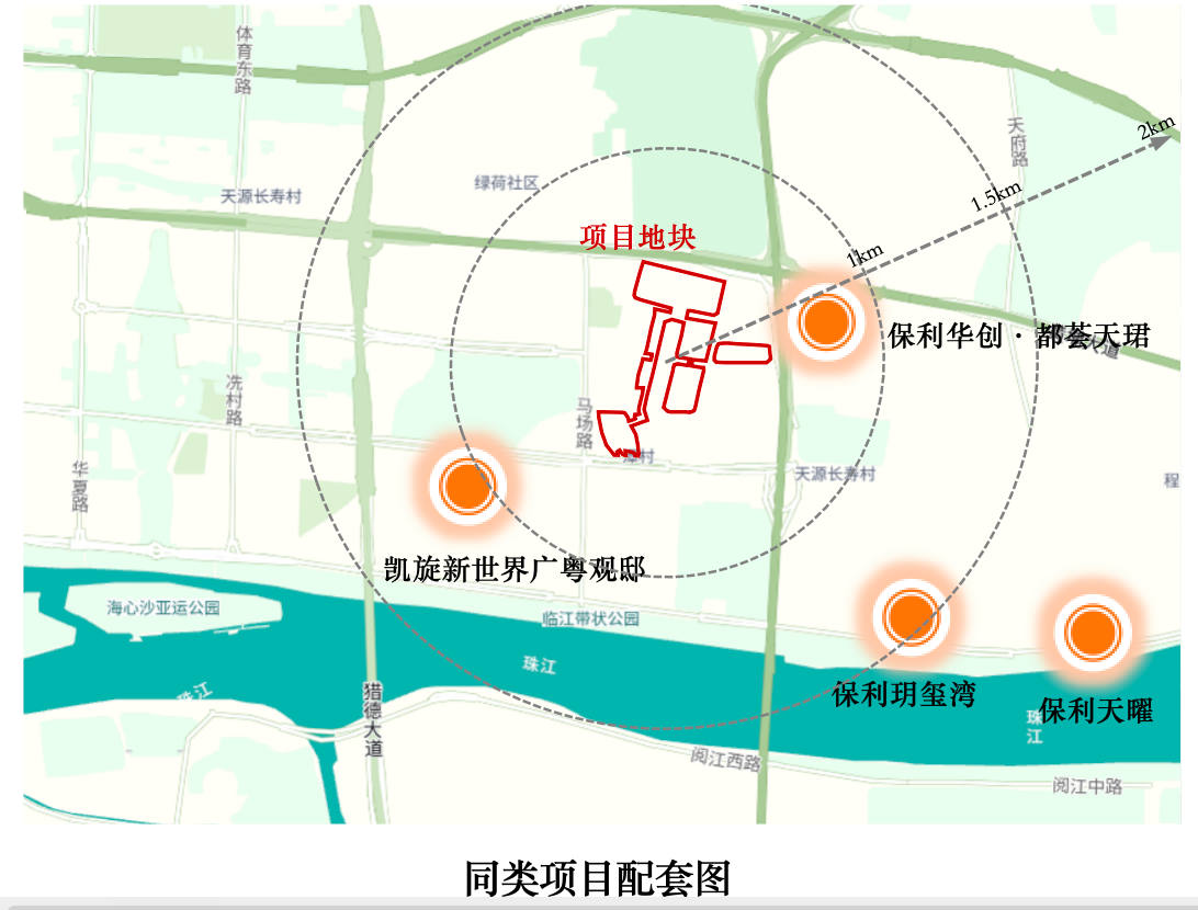 该项目地处传统高端住宅区,豪宅环伺,例如侨鑫汇悦台、凯旋新世界等项目,是整个广州房价最高的板块。近期入市的保利面粉厂项目,也即保利玥玺湾,2025年11月开盘便创下了全国单盘销售纪录,首日销售额超百亿,成交均价高达17万元/平方米,其中最高成交单价更是超过30万元/平方米。