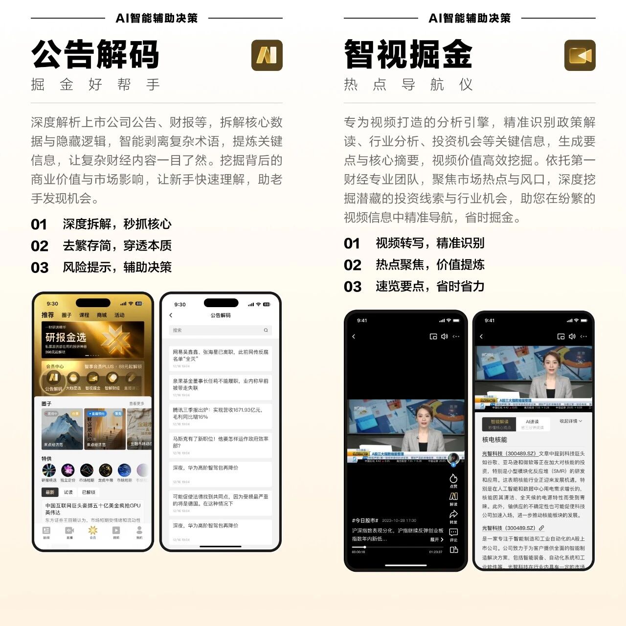 在要闻速读、直播速览、智解财经、火线解读四大基础功能之上,Plus版新增四大AI智能辅助决策工具,精准解决投资分析、信息筛选、效率提升等核心问题!