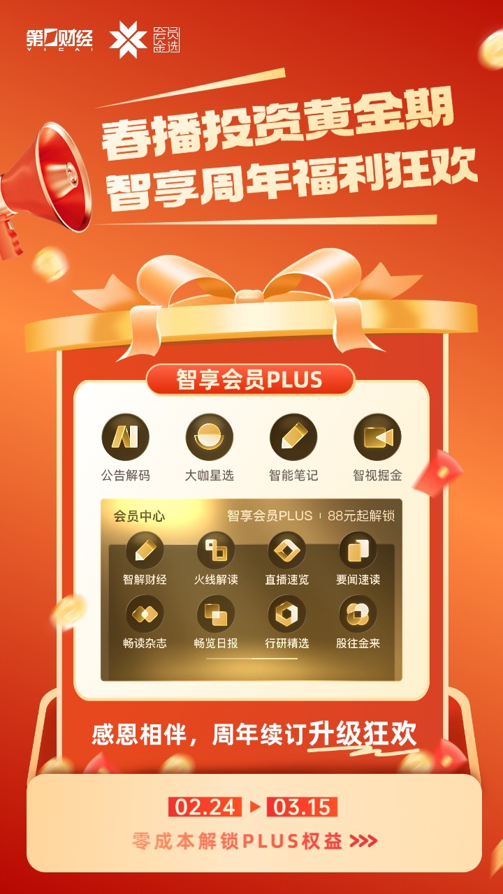 第一财经智享会员上线一周年庆典重磅来袭!专属福利火力拉满,老用户免费升级高阶权益,全周期助力抢占投资窗口,早锁定早获益,错过再等一整年!
