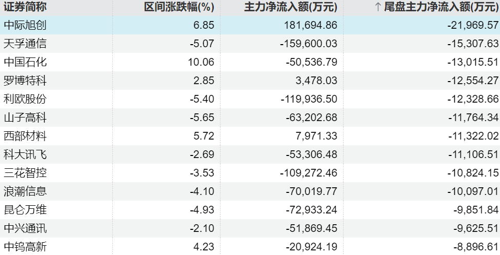 主力今日尾盘买卖这些个股