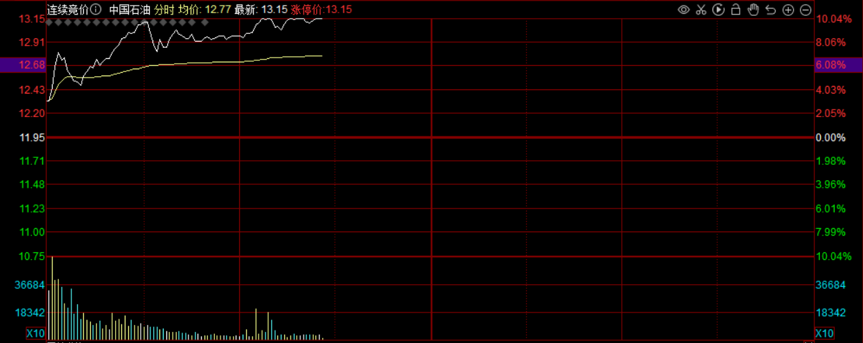 继昨日历史首次集体涨停后,A股“三桶油”股价今日再度爆发。
