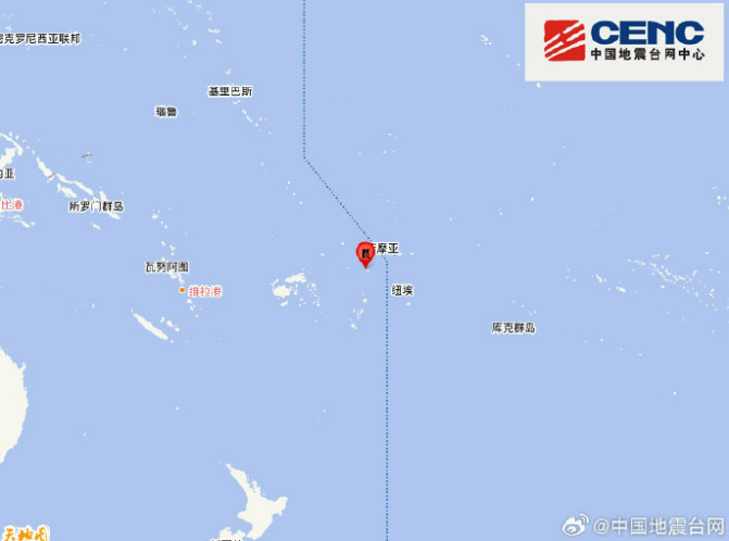 中国地震台网正式测定:03月08日17时28分在汤加群岛(南纬15.80度,西经173.90度)发生6.0级地震,震源深度130千米。
