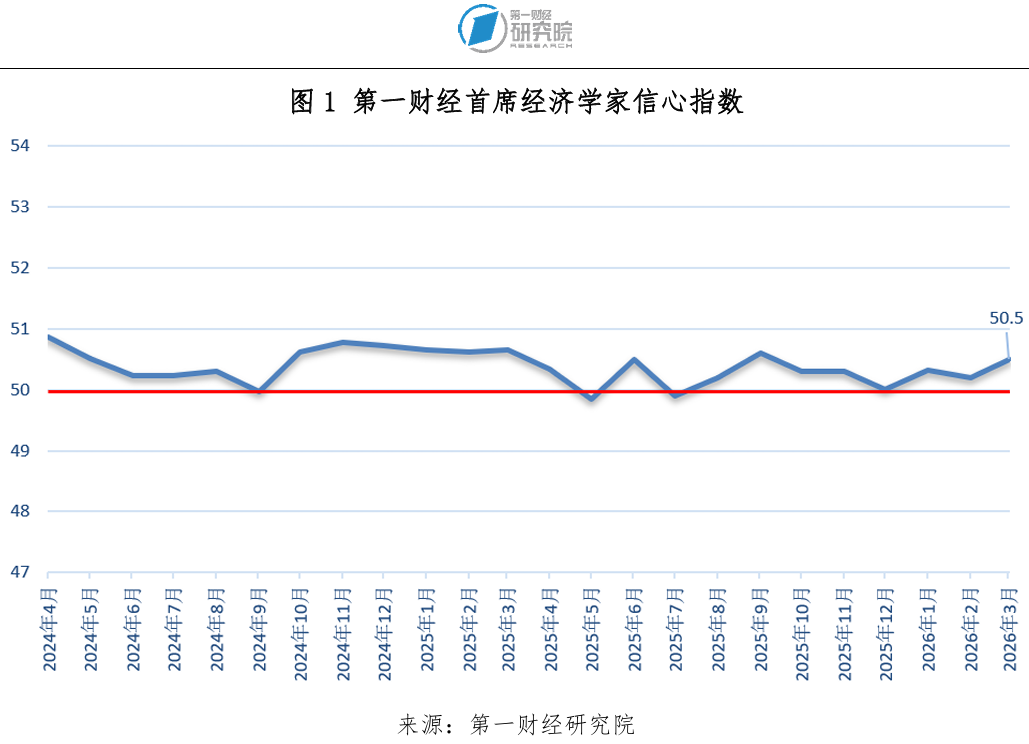 2026年3月,第一财经研究院发布的“第一财经首席经济学家信心指数”为50.5,高于上月,连续八个月位于50荣枯线以上。