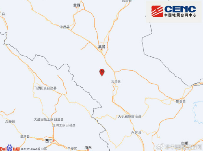 甘肃武威市天祝县发生3.0级地震 震源深度10千米