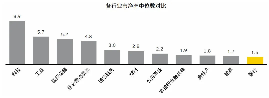 图2:银行业是估值折让最显著的行业利息收入。